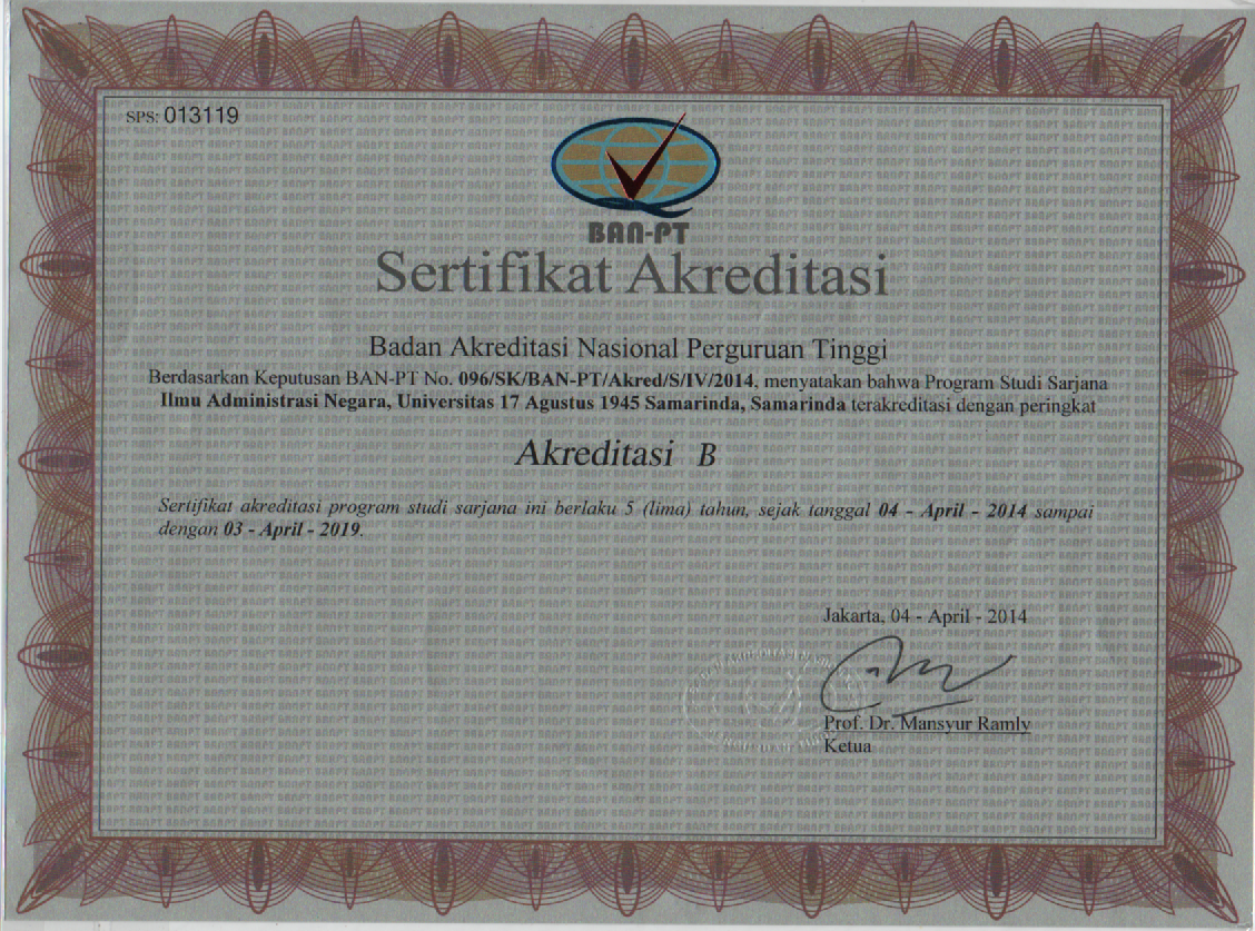 AKREDITASI PROGRAM STUDI ILMU ADMINISTRASI NEGARA UNIVERSITAS 17 AGUSTUS 1945 SAMARINDA